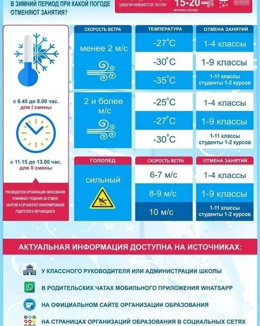 Қысқы кезеңде қандай ауа райында сабақтар тоқтатылады?