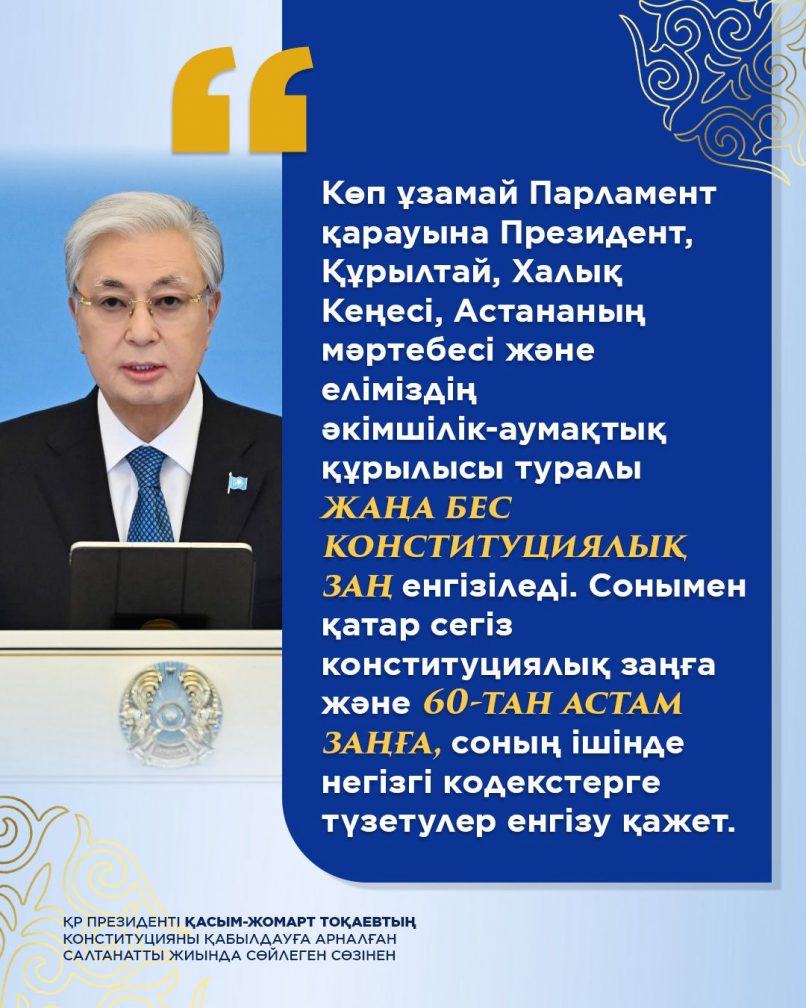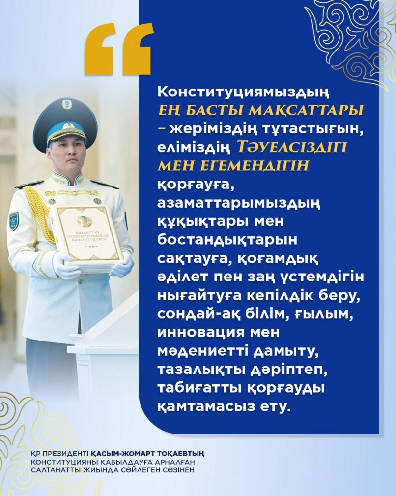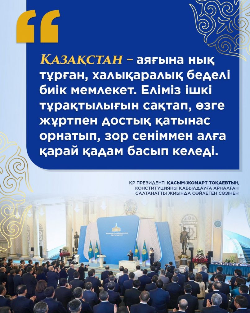Президент Касым-Жомарт Токаев принял участие в торжественном мероприятии, посвященном принятию Конституции